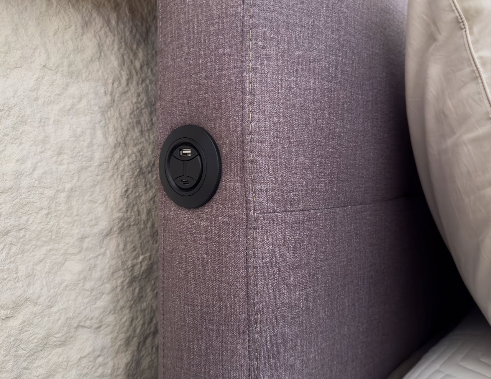 Revêtu d'un tissu doux pour un look chaleureux et douillet, l'ALTUMO est également équipé d'un port de charge USB (types A et C) situé juste à côté du bouton de commande, pour recharger votre téléphone ou votre tablette tout en vous relaxant au lit. Conçu pour supporter jusqu'à 100 kg, ce lève-personne motorisé a été testé pour durer 10 000 cycles, vous offrant fiabilité et confort à long terme.