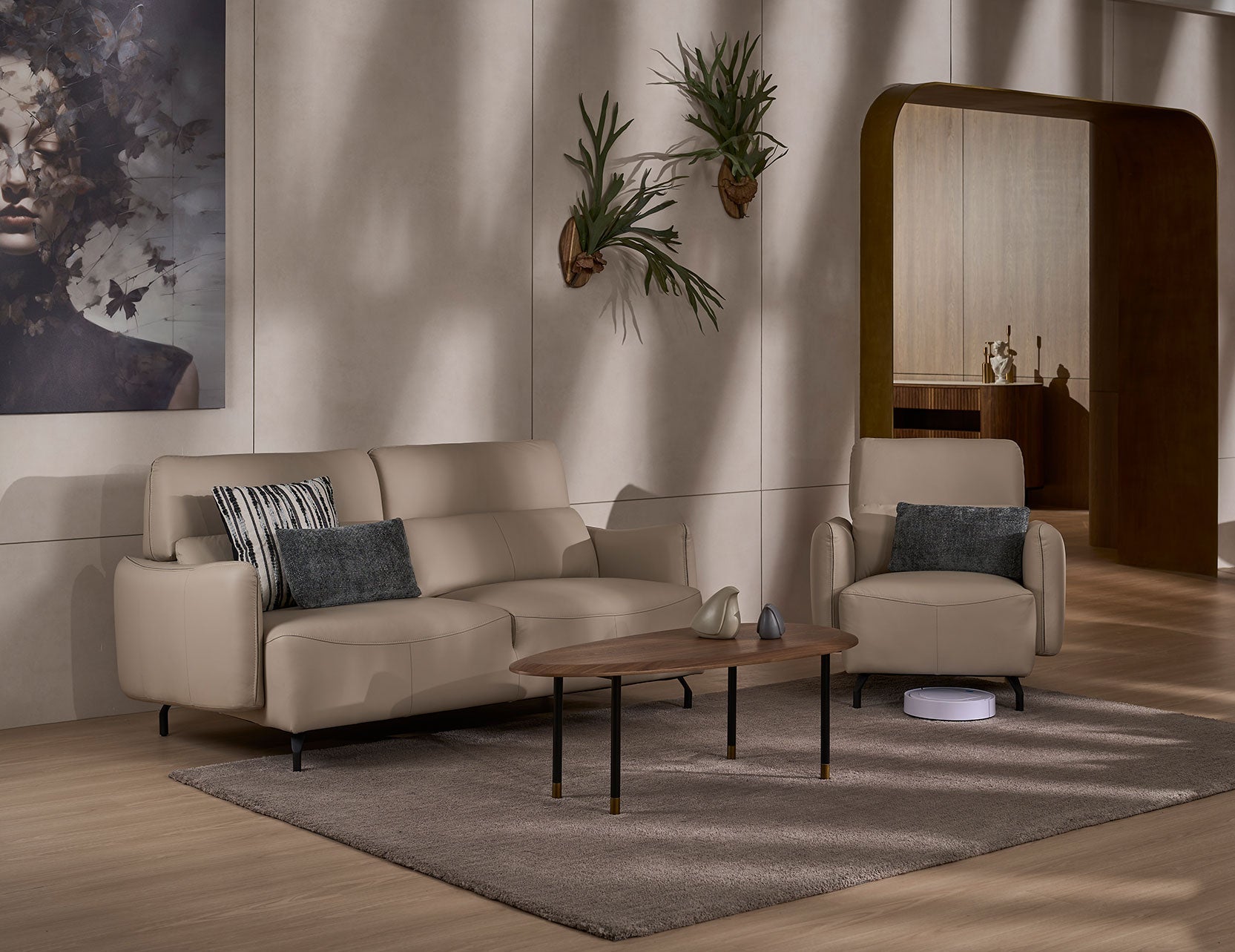Le canapé en cuir Cruise est idéal pour les petits espaces. Ses pieds hauts et robustes en aluminium moulé lui confèrent une touche d'élégance moderne et garantissent un entretien facile grâce à l'aspirateur robot. De plus, les détails subtils du revêtement intérieur des accoudoirs et des appuis-têtes lui confèrent un caractère distinctif et un contraste de couleurs saisissant, pour un effet émerveillement garanti.