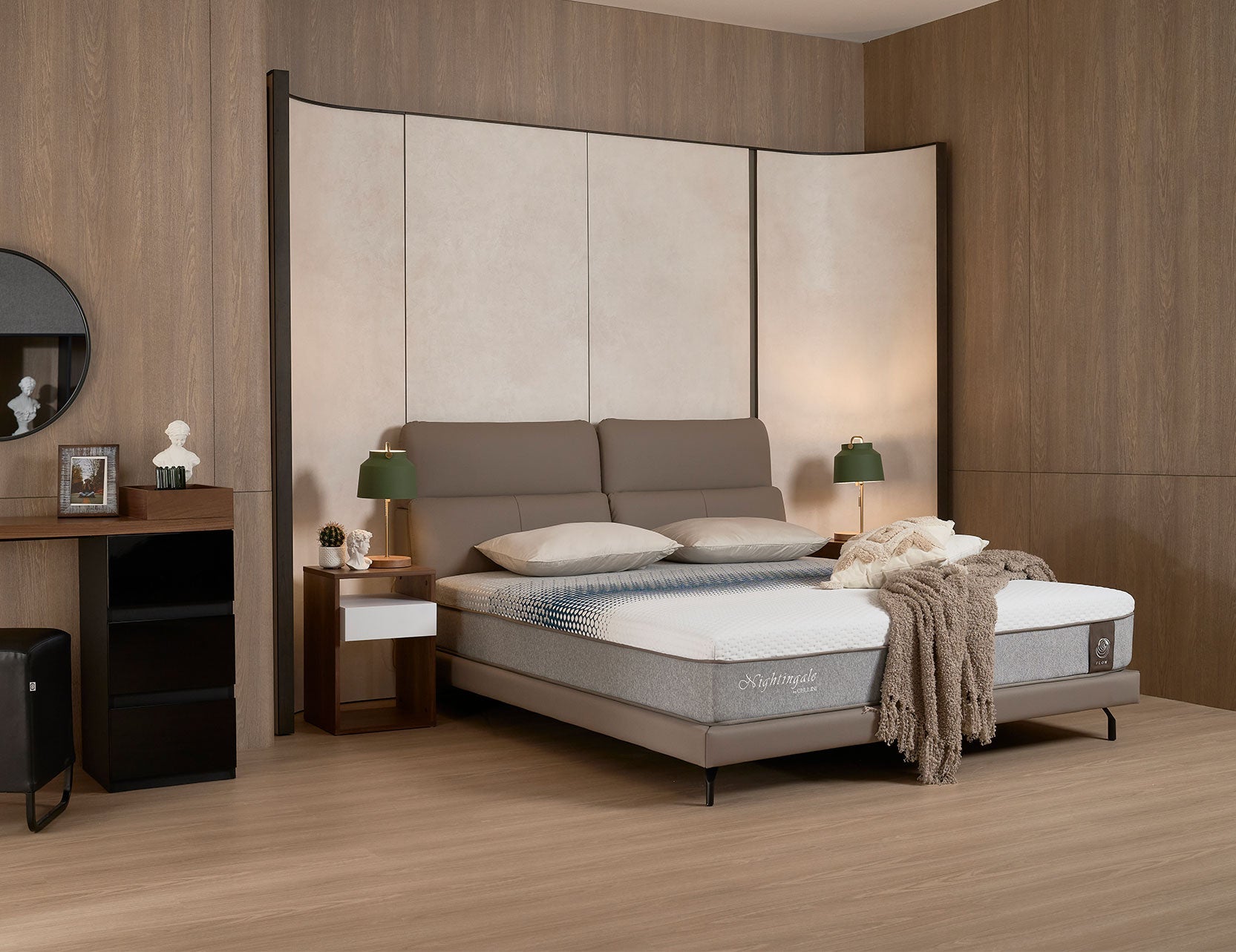 Le cadre de lit CRUISE allie confort moderne et style épuré. Conçu pour accueillir des matelas épais avec un sommier plus bas, il est idéal pour ceux qui recherchent un sommeil confortable et surélevé.
