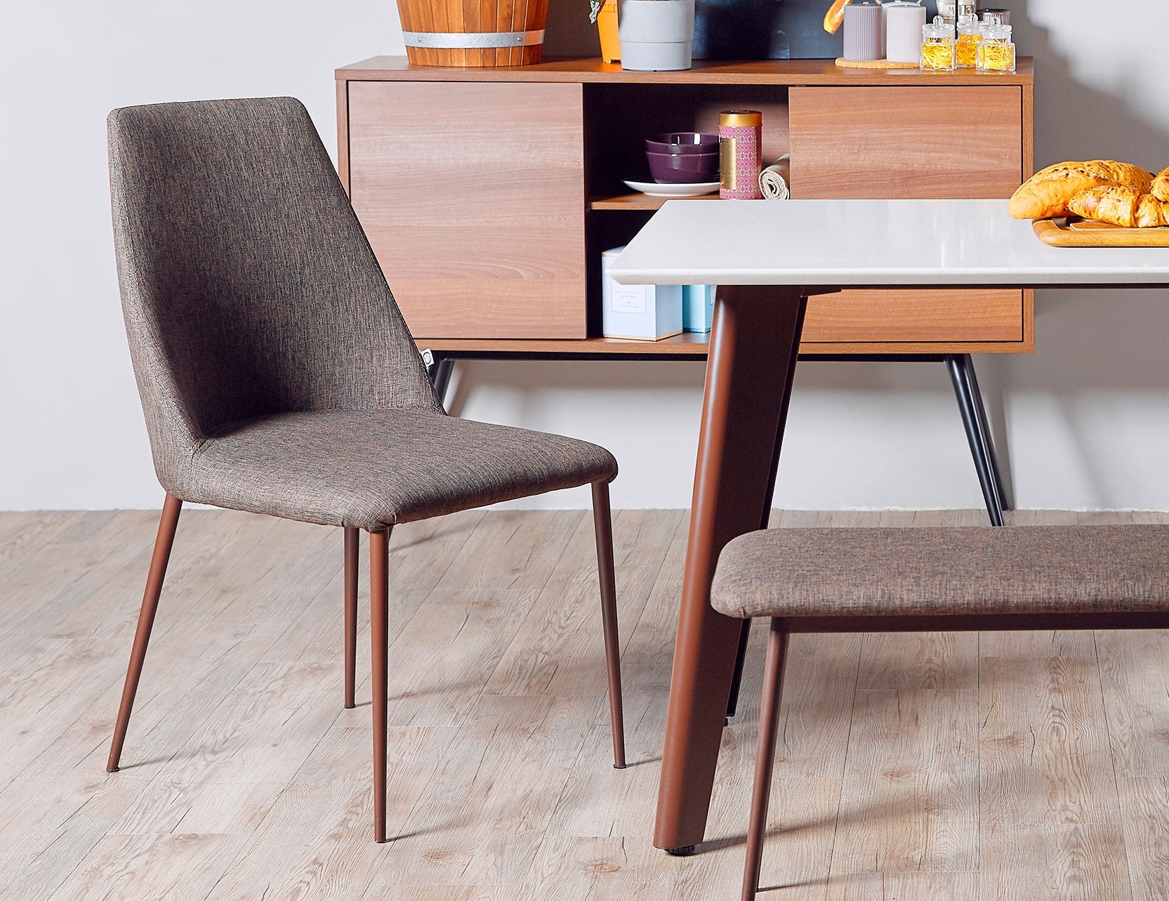 La chaise de salle à manger Henry allie confort simple et charme moderne. Avec son assise en tissu doux et ses pieds fuselés en acier, elle s'intègre parfaitement à toutes les salles à manger, que vous viviez dans un appartement cosy ou une maison spacieuse.