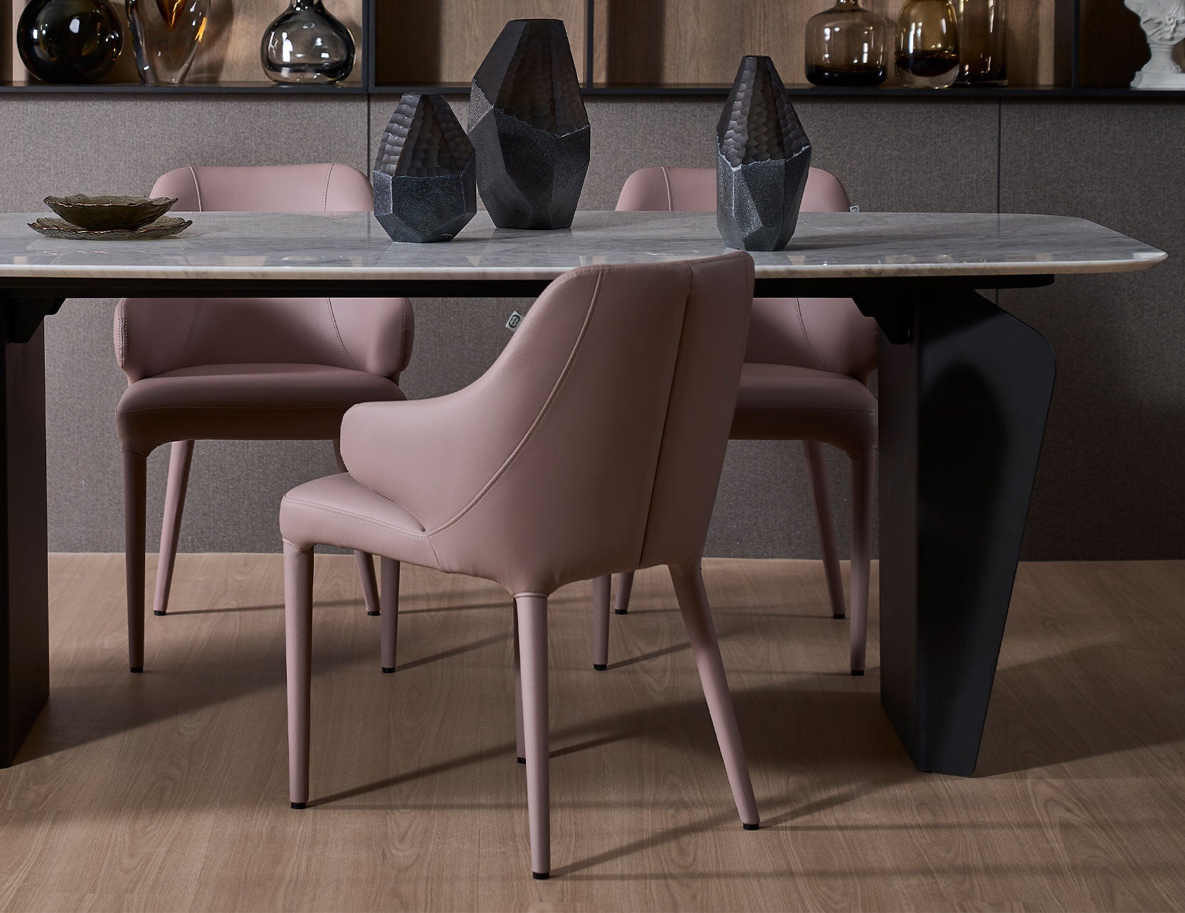 Son dossier incurvé et ses accoudoirs courts offrent une sensation de soutien tout en douceur, idéale pour les longs dîners ou les conversations intimes. Si vous préférez les styles monochromes ou minimalistes, le design unicolore de HUGG est simple, élégant et facile à assortir à d'autres meubles.