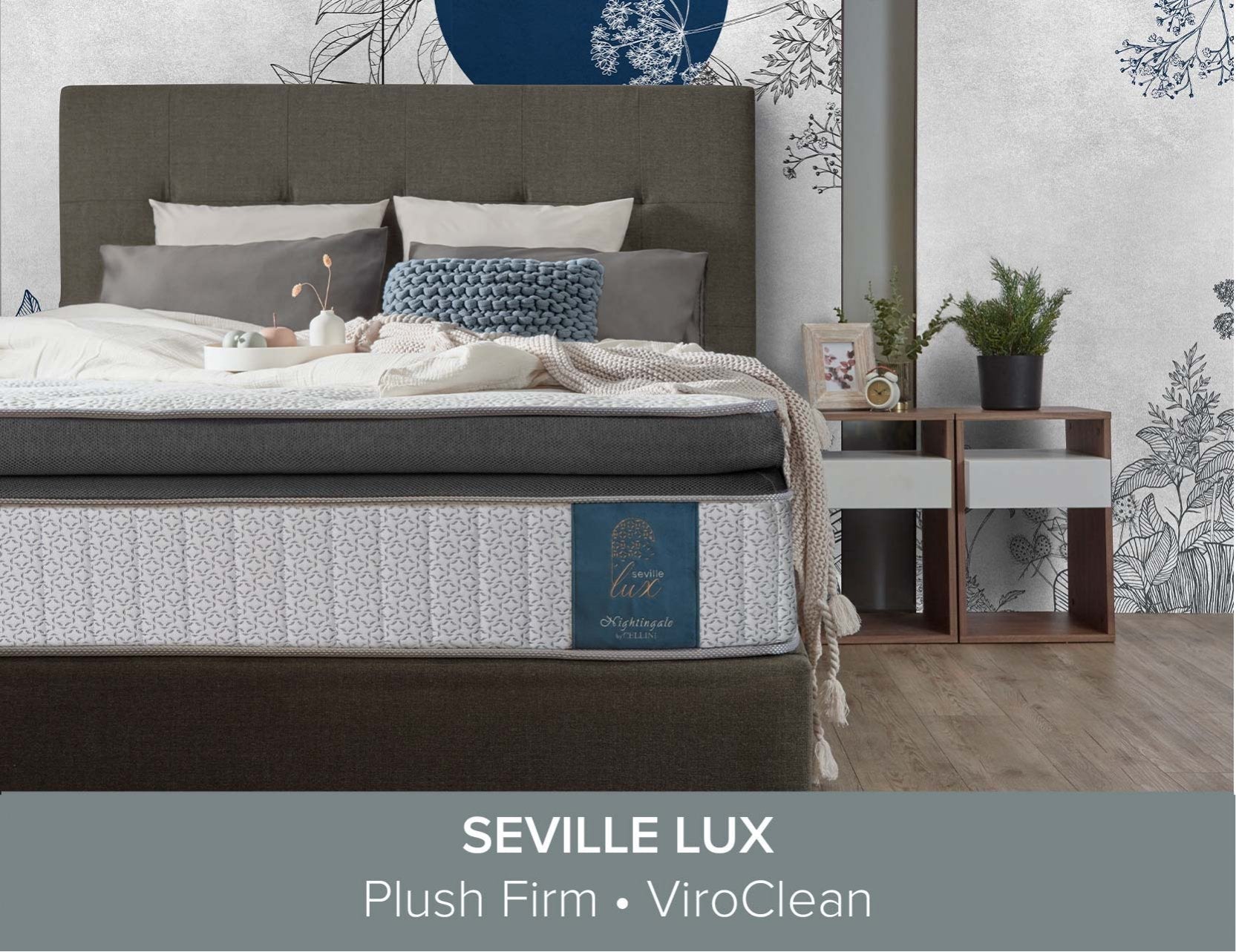 Que vous souhaitiez vous détendre après une longue journée ou vous détendre pour une nuit paisible, SEVILLE LUX est conçu pour vous offrir confort, fraîcheur et protection. De plus, tous les modèles King et plus (et certains Queen) sont pliables, ce qui facilite la livraison.