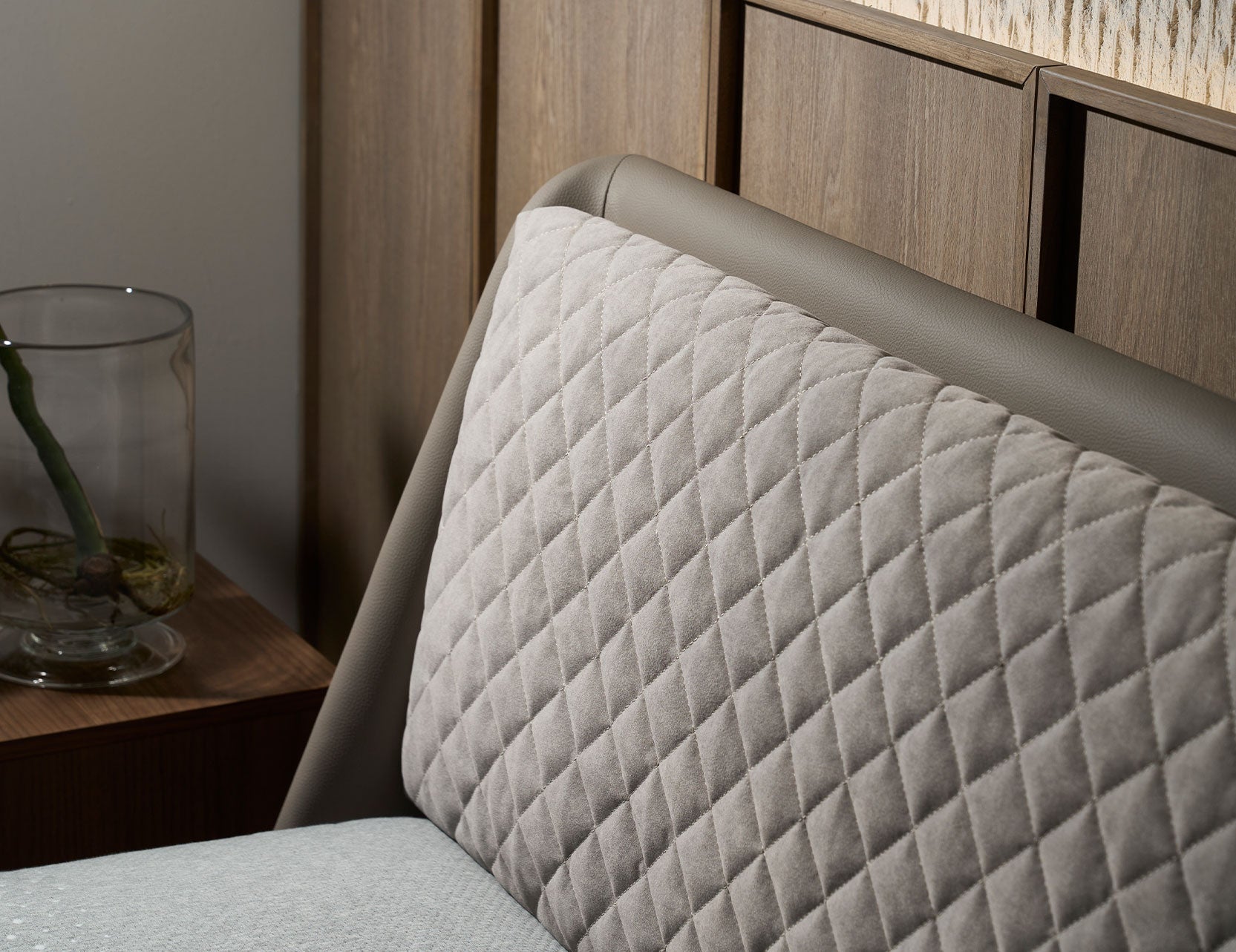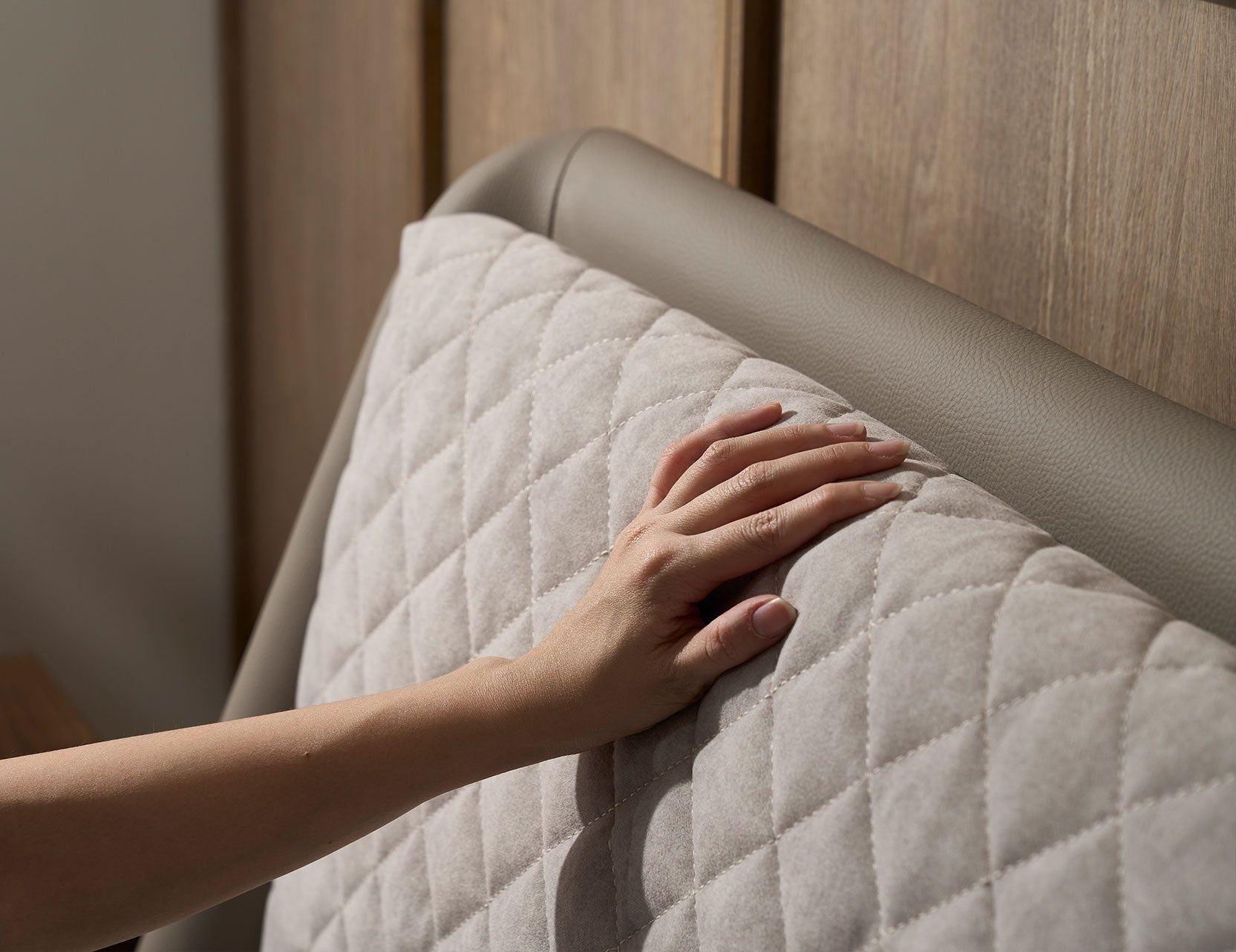 Le cadre de lit SLANT allie style décontracté et confort intelligent. Doté d'une tête de lit fortement inclinée, ce lit est moderne et accrocheur dans n'importe quelle chambre. La tête de lit est dotée d'un coussin matelassé en losanges, doux au toucher. Et devinez quoi ? La housse est amovible pour un lavage facile !